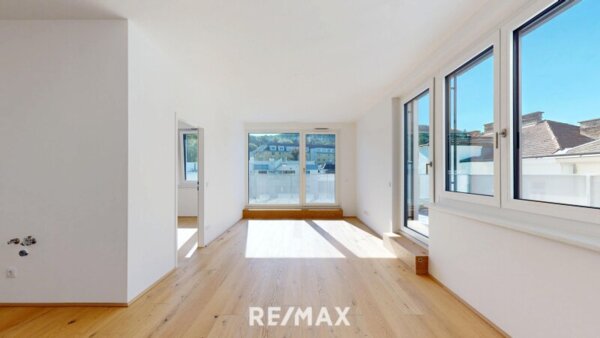 Die großzügige 3-Zimmer-Dachgeschosswohnung mit 66,86 m² besticht durch eine offene, großzügige Wohnküche und eine flexible Raumaufteilung. Moderne Architektur, nachhaltige Energieversorgung und beste urbaner Anbindung machen sie ideal für Paare oder kleine Familien. Die große Terrasse ist aus allen Räumen zugänglich und bietet zusätzlichen Raum zum Entspannen – Ihr persönlicher Rückzugsort in der Stadt.