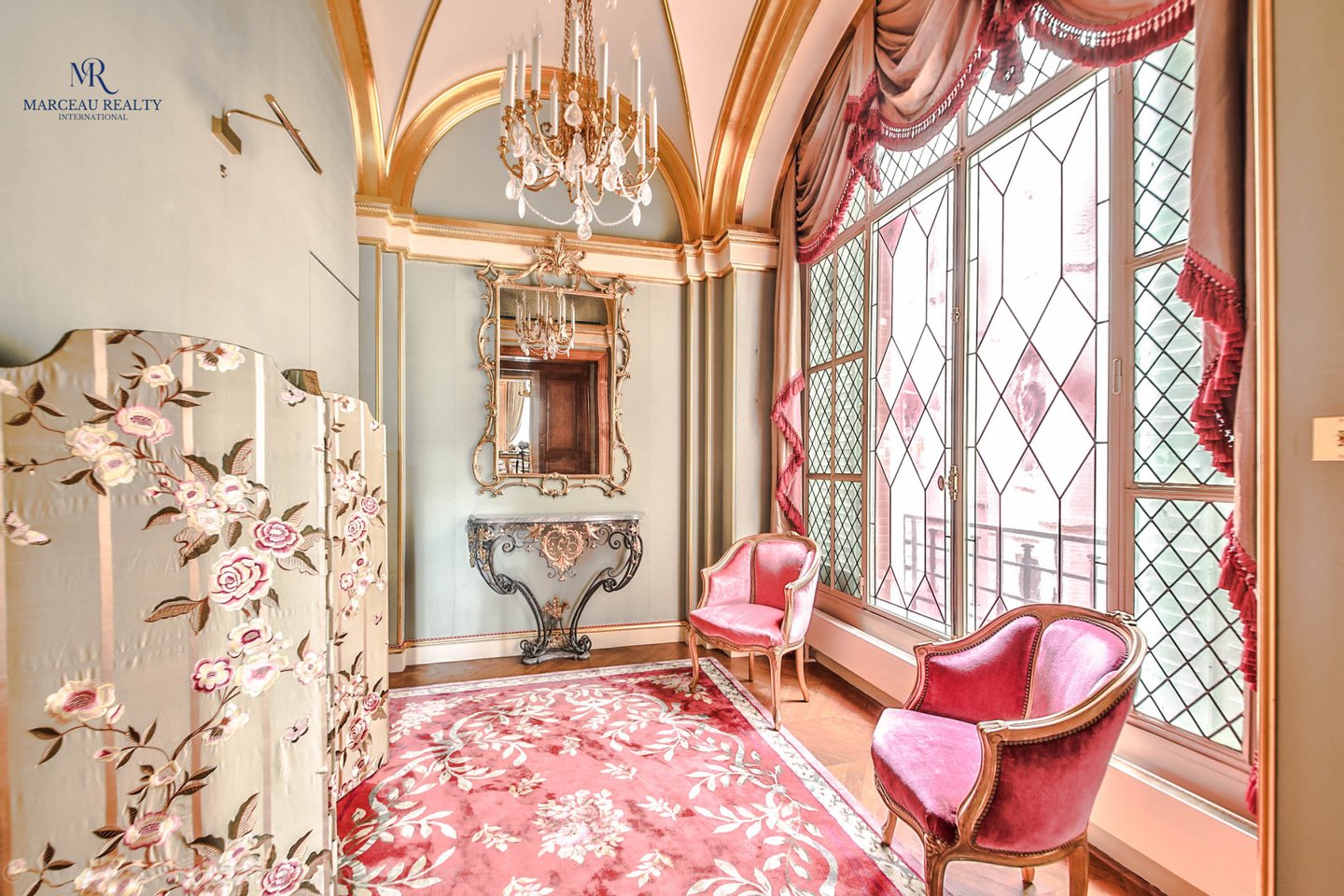 In unmittelbarer Nähe des Place d'Iéna und im zweiten Stock eines 1925 erbauten Steingebäudes von GRAND STANDING, PRÄCHTIGE REZEPTIONSWOHNUNG von 325m2, komplett RENOVIERT von einem ARCHITEKTEN. Es besteht aus einer eleganten Eingangsgalerie, die sich zu einer DREIFACHREZEPTION öffnet, einem großen Esszimmer, einer HERRLICHEN Master-Suite mit Ankleidezimmer und Bad, einem Büro, zwei weiteren Suiten und einer großen Essküche. Die Wohnung verfügt über einen großen Balkon mit freiem Blick. Sehr hohe Decken. Klimatisierung. Ein Service-Apartment von 27m2, eine BOX und drei Keller vervollständigen dieses außergewöhnliche Anwesen. Miteigentum an 16 Grundstücken. Jährliche Nebenkosten: 21.668 Euro (inkl. Gemeinschaftsheizung und Hausmeister). Warmwasserspeicher. Clase Energie: E. Kein laufendes Verfahren gemäß Artikel L. 721-1 des Bau- und Wohnungsgesetzbuches.