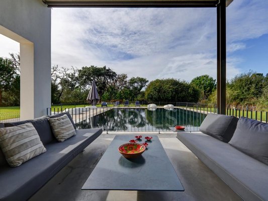 Es verfügt außerdem über ein Wohnzimmer mit Kamin, mit einer Außenerweiterung, einem Esszimmer sowie einem offenen Essbereich für Außenessen und einer voll ausgestatteten Küche.
