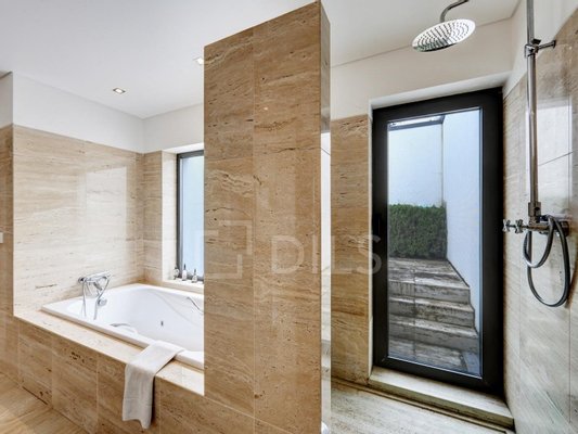 Die 2010 erbaute Villa erstreckt sich über eine Etage und umfasst fünf Suiten, eine mit Zugang zu einer privaten Terrasse, sowie eine Service-Suite, einen Spieleraum und einen Keller.