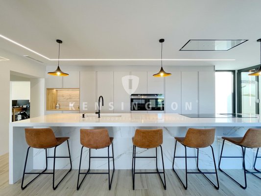 Darüber hinaus verfügt es über eine aerothermische Heizung von NIBE, eine Beleuchtung mit zwei Zündungen und eine elektrische Ladestation auf dem Parkplatz. Die Immobilie ist nach höchsten Standards ausgestattet: Calacatta-Marmor, GROHE-Armaturen in sieben Bädern, Porzellanböden, Eisengriffe an Türen und Schränken sowie eine Siemens-Küche mit brandneuen Geräten.
