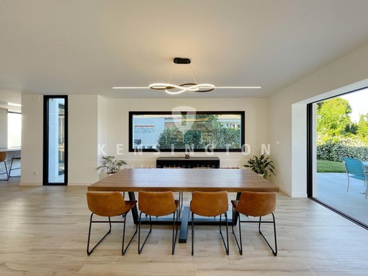 Das 1949 erbaute und komplett renovierte Haus verbindet zeitgenössische Einrichtungstrends mit fortschrittlicher Technologie, darunter ein komplettes Hausautomatisierungssystem und Sonnenkollektoren, die Energieeffizienz, Nachhaltigkeit und Komfort garantieren.