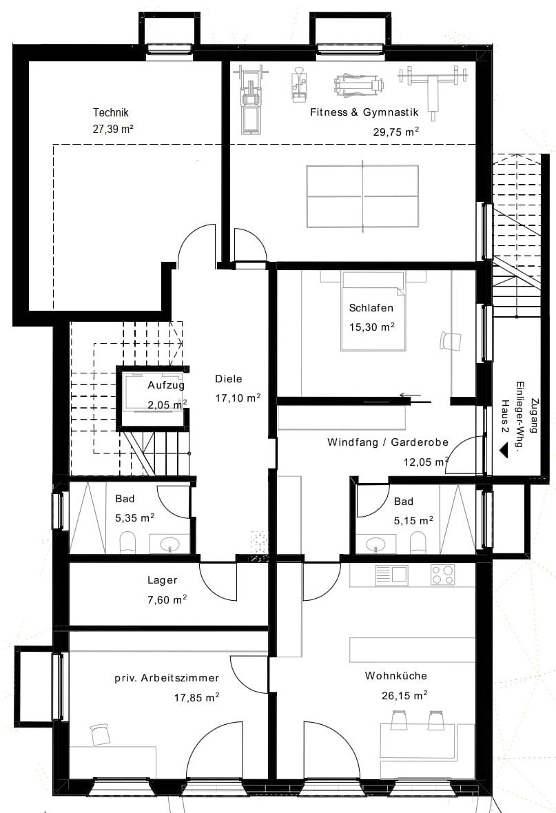 - Hochwertiges Garten- und Fitnessgeschoss mit eigenem Gym