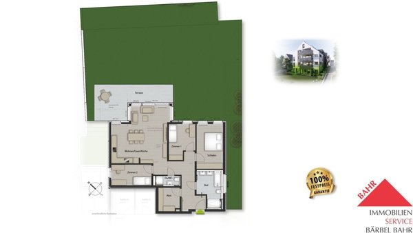 - Großzügige Terrasse mit eigenem Gartenanteil von ca. 215 m²