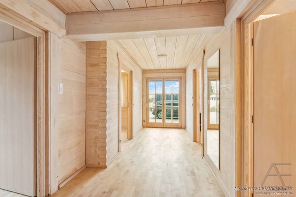Die wohngesunde Bauweise mit natürlichen Materialien wie Fichtenholz, Lehm, Lythothermplatten und massiven Holzelementen erzeugt ein einzigartiges Raumklima und erfüllt höchste ästhetische wie ökologische Standards.
