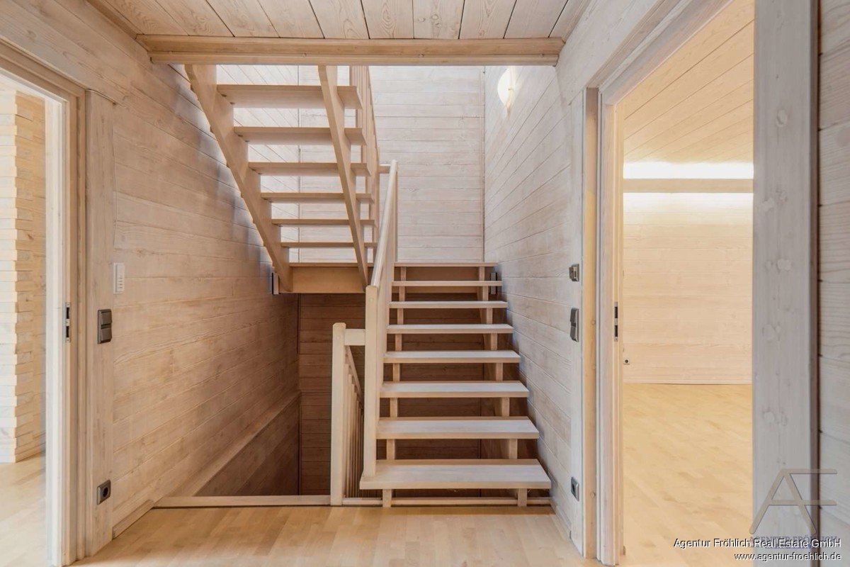 Die Treppenhäuser und Fußböden sind aus massivem Ahornholz und wurden bis Korn 240 geschliffen.