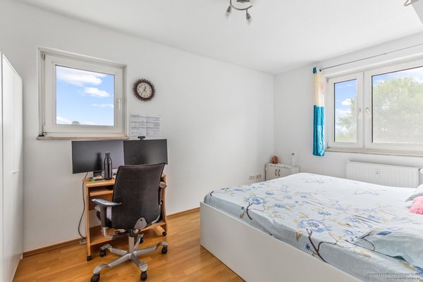 Das Highlight der Wohnung ist die Loggia, die nicht nur zusätzlichen Raum bietet, sondern auch eine idyllische Aussicht in das parkähnliche Umfeld gewährt. Die hohe Baumdichte rund um das Gebäude sorgt dabei für ein angenehmes Klima und natürliche Beschattung.
