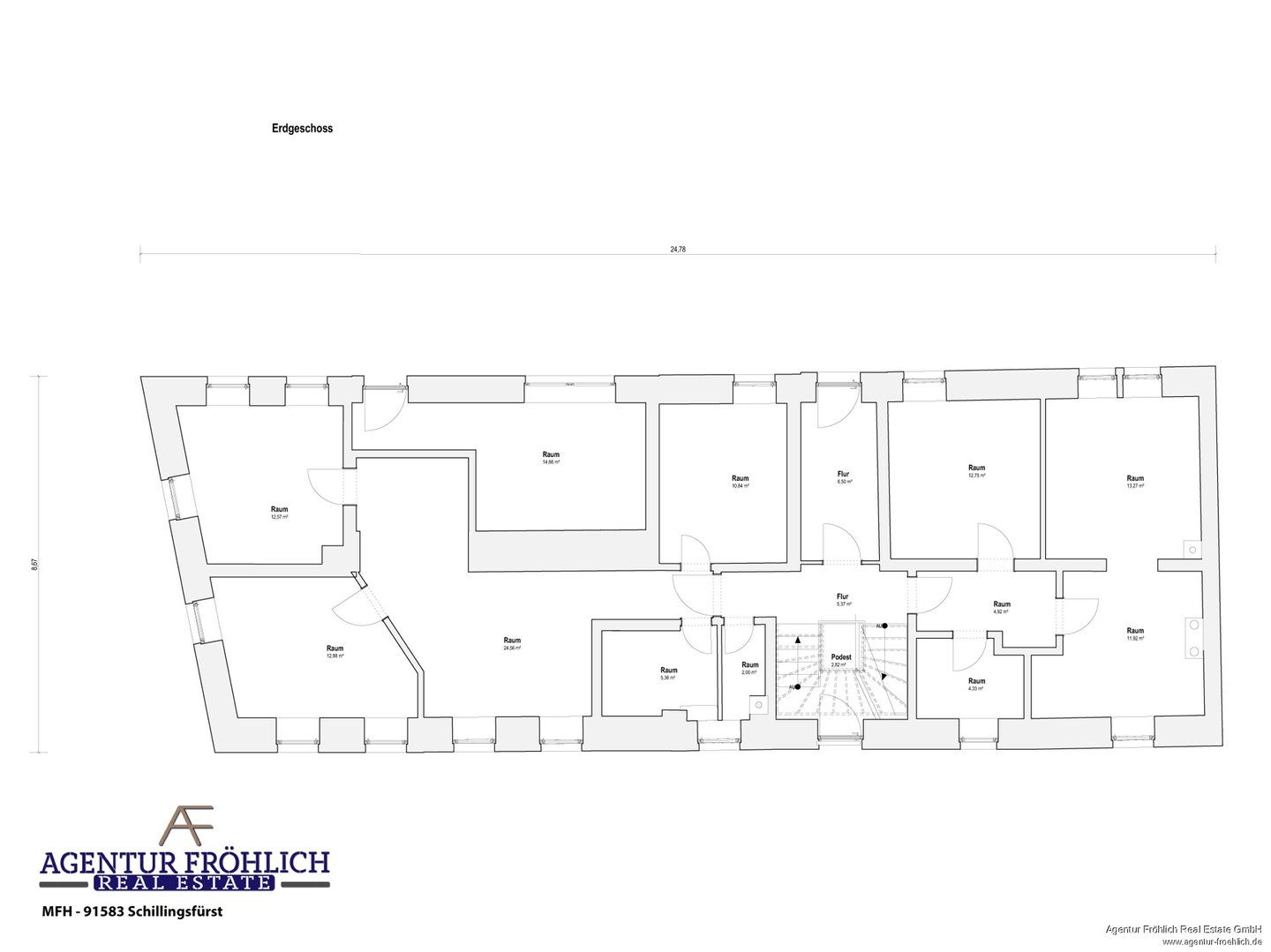 Treppenhaus nebst Heizungs- & Anschlussraum umfasst etwa 24 m² Nutzfläche.
