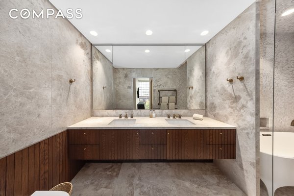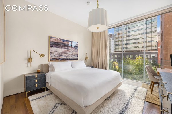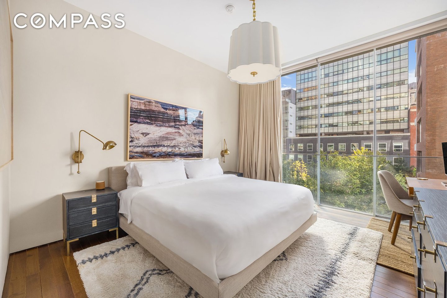 Diese geräumige Zwei-Zimmer-Wohnung mit zweieinhalb Bädern im The Jardim bietet modernes Design und durchdachte Details in einer der besten Boutique-Eigentumswohnungen West Chelsea. Fertiggestellt 2019 und entworfen vom preisgekrönten Architekten Isay Weinfeld, verfügt das Gebäude über nur 36 Häuser, einen diskreten Porte-Cochère-Eingang von der 27. bis zur 28. Straße, einen Vollzeit-Portierservice und exzellente Sicherheit. Die Wohnung ist von Südlicht erfüllt und verfügt über bodentiefe Schiebefenster, die auf Juliet-Balkone mit Blick auf die angelegten Gärten und die Skyline öffnen. Die Innenräume umfassen 3 Meter hohe Decken, 7 Zoll breite Eichenholzböden und eine maßgeschneiderte Molteni-Küche mit Edelstahlarbeitsplatten und Gaggenau Geräten. Die übergroßen Badezimmer sind mit Graphitmarmor mit beheizten Bodenstrahlen ausgestattet, und das Haus verfügt außerdem über Waschmaschine/Trockner, zentrale Klimaanlage, maßgefertigte Schränke und ein separates Gästebad. Zu den Einrichtungen des Gebäudes gehören ein 18 Meter langes Schwimmbecken, ein Fitnesscenter und ein Kinderspielzimmer. Der Standort bietet sofortigen Zugang zur High Line, Top-Galerien, Chelsea Piers, Hudson Yards und Avenues: The World School.