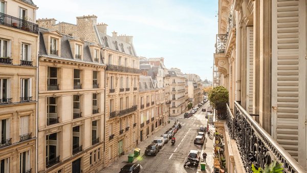 Im dritten Stock eines eleganten Sandsteingebäudes gelegen, verfügt dieses aufzugsfähige Gebäude über großzügige Flächen und reichlich Tageslicht. Beim Betreten werden Sie von einer Eingangsgalerie begrüßt, die zu einem riesigen Wohnzimmer von 43,50 m² mit einem funktionalen Kamin und direktem Zugang zu einem rundum geführten Balkon führt.