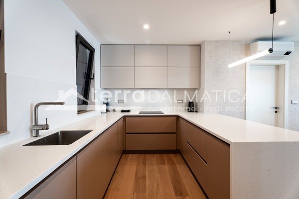 Die drei Wohneinheiten im ersten und zweiten Stock bieten geräumige Wohnzimmer, voll ausgestattete, maßgeschneiderte Küchen und luxuriöse Schlafzimmer mit eigenem Bad. Jede Wohnung verfügt über einen eigenen Waschraum. Innenraum und Design Das Interieur wurde von einem renommierten Innenarchitekten entworfen und an den Standort und den Typ der Einrichtung angepasst, um vollen Genuss und Entspannung zu genießen. Alle Möbel sind maßstabsgemäss entworfen und gefertigt, und alle Räume sind vollständig ausgestattet, ohne dass zusätzliche Investitionen erforderlich sind. Böden Erstklassiges dreischichtiges Parkett von Alpod in warmen Naturtönen in Wohnzimmern, Schlafzimmern und Fluren (geeignet für Fußbodenheizungen) Erstklassige Keramikfliesen vom italienischen Hersteller Marazzi in Bädern, Küchen, Vorratskammern und auf Terrassen Großformat-Keramikfliesen 2 cm dick auf Terrassen und Loggia-Böden, verlegt auf einer erhöhten Konstruktion Wände und Dekoration Keramikziegel Klasse I in der vollen Höhe von Räumen in sanitären Einrichtungen Wandtapeten von einem führenden Hersteller Für zusätzlichen Schwerpunkt auf Innenausstattung werden die Wände in anderen Bereichen mit weißer halbverstreuter Farbe gestrichen. Badezimmer: Zehn Badezimmer sind mit sanitären Einrichtungen des renommierten Herstellers GROHE ausgestattet, mit einer speziellen Oberfläche für Haltbarkeit und einfachere Wartung. Begehbare Duschen, umgeben von transparenten Glas- und Aluminiumprofilen, eingebaute Zisternen mit verbessertem Lärmschutz und doppelter Spülung gewährleisten maximale Hygiene und Zuverlässigkeit. Technologie und intelligente Systeme Das gesamte Heiz- und Kühlsystem basiert auf Samsung Hybrid-Wärmepumpen, die über Wanddisplay-Controller oder die SmartThings-Anwendung gesteuert werden können: Fußbodenheizung in allen Bereichen, gesteuert durch ein Wandthermostat in jedem Raum, Multi-Split-System für Kühlung und Heizung in jeder Wohnung mit Außeneinheiten auf dem Dach, Aufbereitung von Warmwasser durch Warmwassertanks für jede Wohnung, mechanische Belüftung mit geräuscharmen Ventilatoren in sanitären Bereichen, Elektrotechnik Installationen und Sicherheit Farb-IP-Video-Intercom für Audio-/Videokommunikation am Eingang und in allen Wohneinheiten Verschlüsselte Eingangstür für maximale Sicherheit HD-Farbvideo mit klarem Ton – deckt die gesamte Anlage und Umgebung ab Notbeleuchtung mit eigener Stromquelle, optische Internet- und LAN-Verbindungen in jedem Raum Gemeinsames Antennensystem mit LED-Fernsehern in allen Bereichen Lokales Soundsystem im Erdgeschoss Beleuchtung Dimmbare Beleuchtung entwickelt von der Architekt mit hocheffizienten LED-Quellen. Automatisches Einschalten mit Bewegungsmeldern im Eingang und Treppenhaus. Die Umgebung wird mit sorgfältig ausgewählter Designerbeleuchtung beleuchtet, die von einem automatischen Zeitrelais für eine optimale Umgebungsatmosphäre in der Nacht gesteuert wird. Premium-Klasse-Aufzug Eingebauter Aufzug vom führenden deutschen Hersteller Schindler vom Keller bis in den zweiten Stock, gemäß den Barrierefreiheitsbestimmungen. Zusätzlicher leichter Aufzug zum Transport von Lebensmitteln und Getränken vom Keller ins Erdgeschoss. Außenbereiche und Innenhof – Mediterranes Leben im Freien Im Mittelmeer findet das echte Leben nicht drinnen statt. Es passiert draußen, auf Terrassen, am Pool, im Garten. Der 60 m² große Infinity-Pool mit einem Überlauf, der visuell ins Meer übergeht, ist nicht nur ein Pool, sondern ein Statement. Beheizt, mit einem robotischen Staubsauger für einfachere Wartung, mit einer funktionalen Abdeckung zum Schutz. Die Poolschale aus Stahlbeton ist zusätzlich thermisch isoliert, und das Innere ist mit hochwertiger PVC-Folie verkleidet. Eine Außendusche am Fußgängereingang zum Strand ermöglicht eine schnelle Erfrischung nach dem Schwimmen im Meer. Vier Terrassen mit kompletten Möbeln bieten eine Auswahl, und eine überdachte Terrasse mit Sommerküche ermöglicht das ganze Jahr über den Genuss der mediterranen Zubereitungsweise – im Freien, mit Aussicht, mit dem Duft des Meeres in der Luft. Der Garten wurde mit der Sorgfalt gestaltet, die eine solche Immobilie verdient. Rasen, Bäume, mediterrane Pflanzen (Zitronen, Orangen, verschiedene Blumen), alles bewässert durch ein automatisches Rain Bird-Bewässerungssystem mit "Tropf"-Technologie und Rotationssprinkler. 5 cm dicke Steinwege führen durch dieses kleine mediterrane Paradies. Warum diese Immobilie? Diese Immobilie stellt eine seltene Gelegenheit dar, eine hervorragende mediterrane Residenz zu erwerben, die Folgendes vereint: Außergewöhnliche Lage – erste Reihe zum Meer, nur 10 Meter vom Wasser entfernt Neubau 2025 – ohne Notwendigkeit von Renovierung oder zusätzlichen Investitionen Energieeffizienz A+ – geringere Betriebskosten und eine nachhaltige Zukunft Hochwertige Materialien – Schüco, GROHE, Samsung, Schindler, Marazzi, Alpod, Rain Bird Kontaktieren Sie uns noch heute für eine private Besichtigung und erfahren Sie, warum dies die Definition von Luxusleben an der Adria ist.