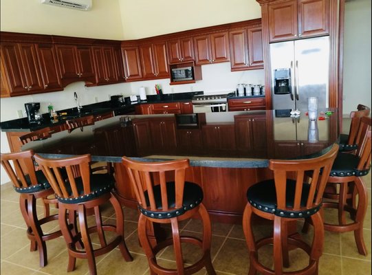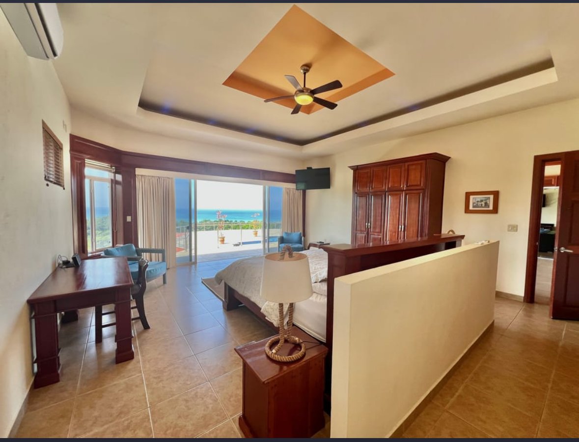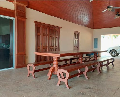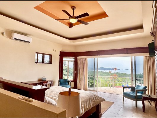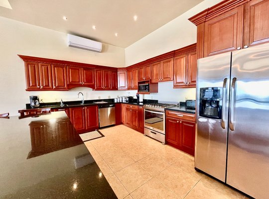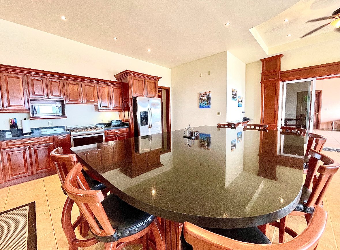 Villa Papagayo "Villa Papagayo", wie dieses spektakuläre Haus genannt wird, steht auf einem betitelten Grundstück von 4693,76 Quadratmetern (+1 Acre) innerhalb der bewachten Gemeinde Morrillo Pacific Heights, mit Blick auf den Pazifischen Ozean und direkten Sonnenuntergängen. Ideal für Familien oder große Gruppen bietet das Hauptgeschoss dieses luxuriösen, voll möblierten Hauses 390,31 (4.200,64 Quadratfuß) geschlossenen Wohnraum sowie einen riesigen Pool und eine Terrasse. Die zusätzliche Ebene umfasst drei unabhängige Luxusapartmentstil (1-Zimmer-Ausstattung, jede mit eigener Küche und Bad), die sich einen Pool und eine großzügige Terrasse mit Blick auf das weite Meer teilen. Sie und Ihre Gäste werden von einem imposanten, doppelt hohen Eingang mit einer holzverkrusteten Decke begrüßt, der zu einem offenen Speisesaal und einer Butlerbar führt und bequem mehr als 20 Personen Platz bietet. Innenraumaufteilung & Soziale Bereiche Wohnzimmer & Küche: Das große, überdachte Wohnzimmer mit einer großen offenen Küche verfügt über luxuriöse Oberflächen und Geräte, darunter eine geräumige Speisekammer und zwei weitere Gästebadezimmer. Wohnzimmer: Es ist sehr geräumig (73,21 m² / 788,00 sq ft), überdacht mit Klimaanlage, mit Schiebefenstern und Türen für offenen Blick auf Ozean und Pool, hochwertigen Mahagoniholzverkleidungen an Wänden und Türen. Er ist vollständig ausgestattet mit zwei großen, bequemen Sofas und mehreren Stühlen für mehr als 10 Personen, dazu einem riesigen 48" Smart-TV und einem geräumigen Gästebad mit hochwertiger Ausstattung. Schiebetüren aus Glas sind so konzipiert, dass sie den Raum für kühle Morgen- oder Abendbrisen öffnen können. Küche: Sie ist zum Wohnzimmer geöffnet und sehr geräumig (16,85 m² / 181,34 sq ft) mit Blick auf das Meer und den Pool, wunderschöne Granitarbeitsplatten und hochwertige Hartholzschränke. Es ist vollständig mit hochwertigen Geräten ausgestattet (Gasherd, Vollwertofen, Kühlschrank in voller Größe, Mikrowelle, Geschirrspüler usw.) und verfügt über eine riesige Granitbar und Stühle, die bis zu 8 Personen Platz bieten. Vorratskammer: Günstig hinter der Küche gelegen, sehr geräumig (7,38 m² / 79,45 sq ft) mit Parkettschränken und Regalen sowie einem großen Gefrierschrank für zusätzlichen Stauraum. Speise- und Servicebereiche: Speisesaal: Der riesige Speisesaal (103,50 m² / 1114,0647 sq ft) befindet sich am Haupteingang mit doppelt hohen Decken und Parkettvertäfelten. Es handelt sich um einen umfangreichen Außenbereich mit einem Holztisch für bis zu 20 Personen, einem kompletten Gästebad und einer Butler-Cocktailbar. Es ist vollständig bedeckt, aber der Meeresbrise ausgesetzt. Waschraum: Sehr geräumig, klimatisiert, ausgestattet mit Waschmaschine, Trockner und Waschbecken. Angrenzend befindet sich ein kleines Schlafzimmer mit einem Etagenbett für zwei Servicepersonal (oder Kinder), die das gemeinsam genutzte Badezimmer im Essbereich nutzen können. Garage: Sehr geräumig (40,2 m² / 432,71 sq ft), mit einer neuen Aluminium-Automatiktür (amerikanischer Qualität) und einer Zugangstür zur Außenterrasse. Hauptschlafzimmer Hauptschlafzimmer: Sehr groß (45,5 m² / 489,76 sq ft), ausgestattet mit Kingsize-Bett, Schreibtisch und großen schiebbaren Glastüren mit Blick auf das Meer. Beinhaltet ein Umkleidezimmer (9,55 m²) mit maßgefertigten Mahagonimöbeln. Das eigenständige Badezimmer (15 m²) verfügt über Doppelwaschbecken, eine große Keramikbadewanne und eine separate, übergroße Dusche. Zweites Schlafzimmer: Sehr geräumig (22 m² / 236,81 sq ft), mit Kingsize-Bett, Schreibtisch, doppelten Decken, geteilter Klimaanlage, begehbarem Kleiderschrank und großem Badezimmer mit Badewanne plus separater Dusche. Gästesuite-Apartments Im Erdgeschoss, unterhalb der Poolterrasse, befinden sich drei unabhängige, voll möblierte und klimatisierte Suite-Apartments: Jede verfügt über eine eigene luxuriöse Küche, ein geräumiges Badezimmer und einen Kleiderschrank. Sie teilen sich ein kleines Tauchbecken und eine große offene Terrasse mit Blick auf das Meer. Sie haben einen unabhängigen Seitenzugang und einen privaten Waschraum. Maße: Suite 1 (39,56 m²), Suite 2 (39,58 m²), Suite 3 (41,75 m²). Bauspezifikationen und Gesamtfläche Die gesamte bebaute Fläche des Hauses beträgt 1.250 Quadratmeter (13.454,88 Quadratfuß), wie folgt aufgeteilt: Überdachte Fläche im Obergeschoss: 500 m². Offene, aber überdachte Fläche: 170 m². Freifläche: 575 m². Baudetails: Betonblockwände und gegossene Betonsäulen. Fiberzementdecke (Panalit) mit Decken, die mit Hartholz verziert sind. Doppelverglaste PVC-Fenster und Schiebetüren. Außengeländer aus Edelstahl. Lage, Zugang & Umgebung Lage: Innerhalb der bewachten Wohnanlage Morrillo Pacific Heights. Das Grundstück bietet 180-Grad-Blick auf den Pazifischen Ozean und Sonnenuntergänge. Es ist nur 1 km von Playa Mata Oscura entfernt, sodass man die Wellen vom Haus aus hören kann. Zugang: Neue und asphaltierte Straße vom Panamerikanischen Highway in Santiago zur Gemeinde. Von Panama-Stadt: Insgesamt 5 Stunden Fahrt. Flüge: Sie können von Albrook nach Santiago per Charterflug fliegen. Nahegelegene Strände und Aktivitäten: Playa Mata Oscura (1 km): Schildkrötenbrüten und Sportfischen in Puerto Nance. Playa Morrillo (10 km): Berühmt für erstklassiges Surfen. Playa Torio und Playa Reina: 20-40 Minuten entfernt. Natur: Nähe zum Cerro Hoya Nationalpark, Wasserfällen, Walbeobachtung und Inseln wie Cebaco und Coiba. Dienstleistungen, Einkaufs- und Gesundheitsshopping: Bramador Supermarkt 9 km entfernt. In Mariato (Hauptstadt) gibt es Banken, Baumärkte, Krankenhäuser und Regierungsbüros. Gesundheit: Notaufnahme in Mariato (30–40 Min.). Die größten Krankenhäuser in Santiago (1,5–2 Stunden) und erstklassige Einrichtungen in Panama-Stadt. Bildung: Lokale öffentliche Schulen in der Gegend. Die meisten Expats nutzen Online-H