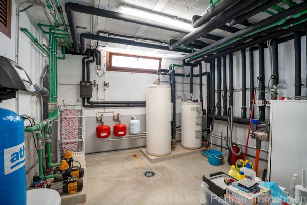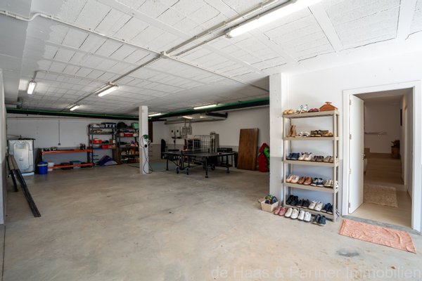 Im Keller befindet sich ein weiteres Schlafzimmer, sowie ein großzügiges Bad mit Dusche. Von hier aus gelangen Sie in die große Tiefgarage. Hier ist Platz für mindestens 5 Autos und eine weitere Wallbox ist installiert. Ebenfalls befindet sich die Heizung (Öl), der Technikraum und die neuwertige Solartechnik hier. Auf Wunsch kann auch ein Fitnessraum, eine Bodega, ein Heimkino o.ä. errichtet werden, da ausreichend Platz vorhanden ist.