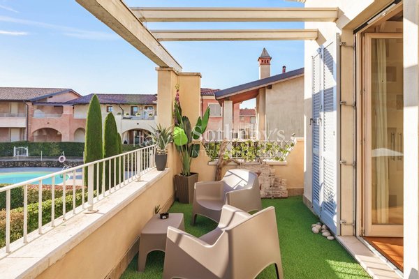 Eingebettet in eine elegante Wohnanlage mit Swimmingpool befindet sich diese Villetta nur wenige Minuten vom See und vom Ortszentrum von Manerba del Garda entfernt, in einem sicheren und abgeschlossenen Umfeld.
