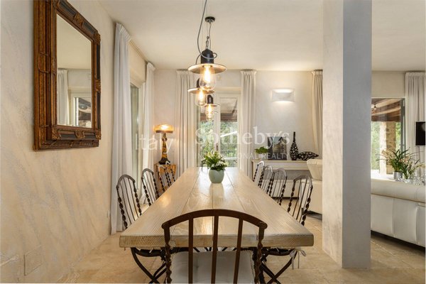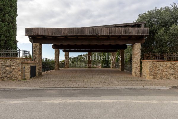 Zahlreiche Panoramaterrassen laden dazu ein, an warmen Tagen zu entspannen und die Außenbereiche optimal zu nutzen. Der gepflegte Garten, bereichert durch Zierpflanzen und jahrhundertealte Olivenbäume, rahmt einen schönen 45 m² großen Pool ein. Abgerundet wird das Anwesen durch einen privaten überdachten Stellplatz, eine große Garage und einen geräumigen Technikraum, die höchste Funktionalität und Komfort gewährleisten.