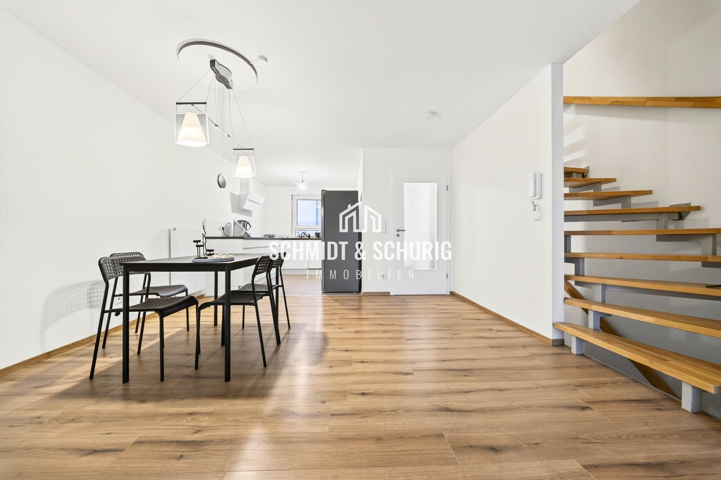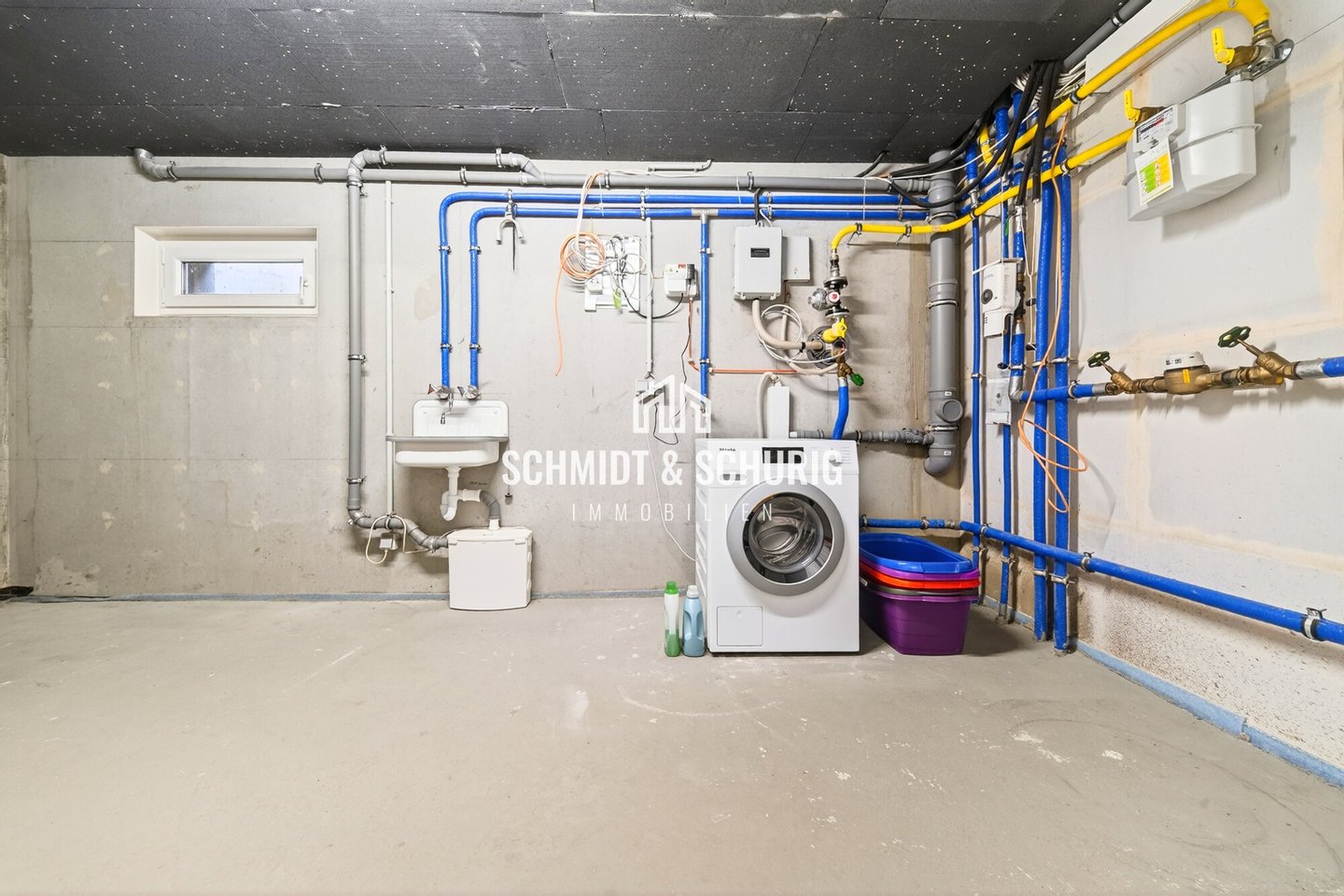 Zur Ausstattung gehören Kunststofffenster mit Isolierverglasung, Rollläden, Laminat- und Fliesenböden, sowie eine elegante Stahl-Holztreppe.