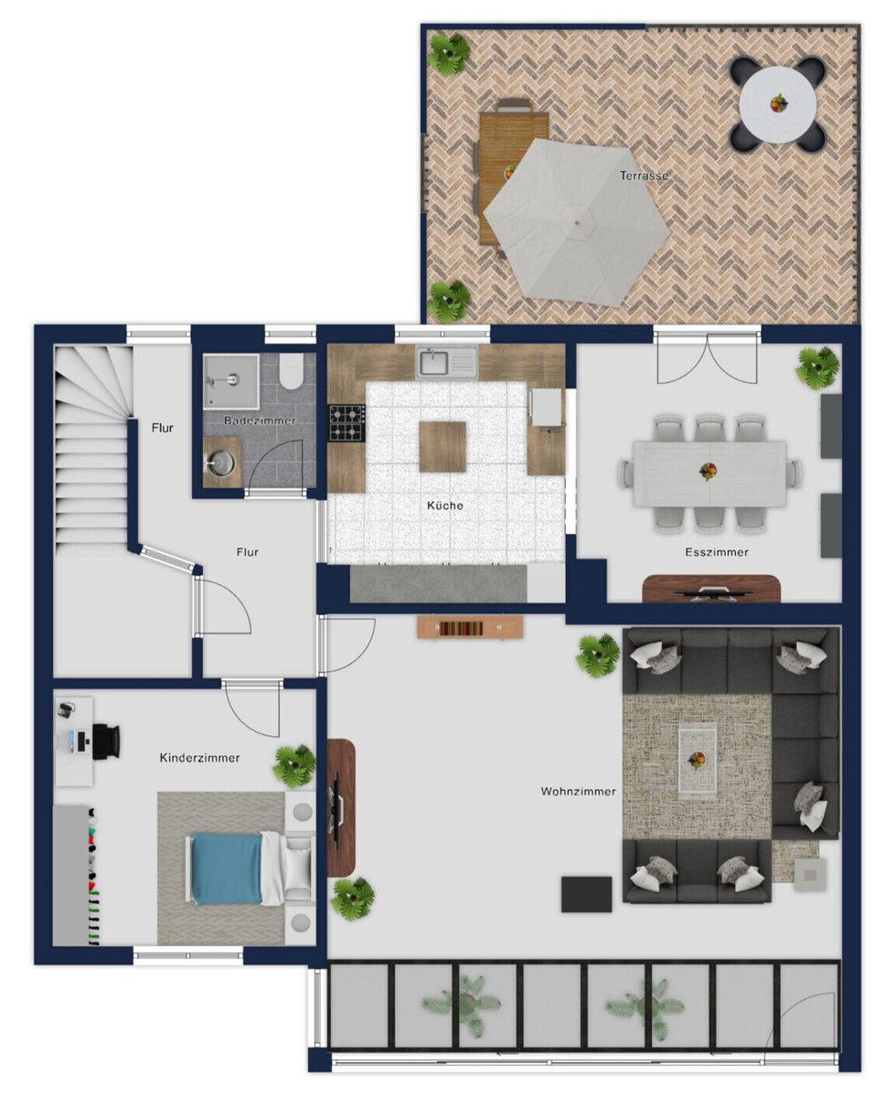 Die Grundrissgestaltung ist funktional und familienfreundlich. Helle Räume und großzügige Zimmergrößen schaffen eine angenehme Wohnatmosphäre und vielseitige Nutzungsmöglichkeiten. Vom Wohnzimmer aus gelangen Sie direkt auf die Terrasse sowie in den Garten – ideal für entspannte Stunden im Freien.