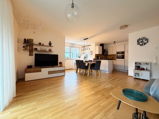 Auf 118 m² haben Sie herrlich viel Platz. Richten Sie Ihr neues Zuhause in drei Schlafzimmern, dem großen Wohn- und Esszimmer, dem Badezimmer und dem Gäste-WC, dem Hauswirtschaftsraum und der Speis' (Speisekammer) ein. Auf Ihrer eigenen Terrasse genießen Sie künftig Ihren Feierabend. Der abschließbare Keller sowie der eigene Tiefgaragenstellplatz machen das Angebot perfekt.