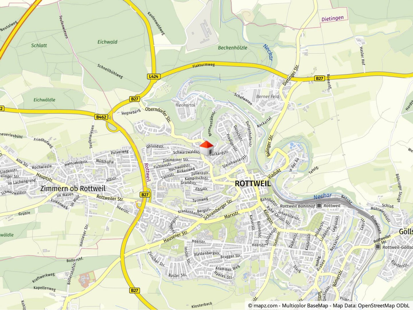 Rottweil liegt verkehrsgünstig an der Bodenseeautobahn A81 Stuttgart-Singen und hat die eigene Ausfahrt "Rottweil". In nördliche Richtung erreichen Sie bequem Stuttgart. Zum "Schwäbischen Meer" (Bodensee) sind es etwa 45 Minuten. Mit den "Öffis" kommen Sie hier bequem von A nach B: die 13 Linien des Stadtbusses verbinden die Innenstadt mit allen Stadtteilen und den Außenbezirken. Die Stadt liegt an der "Gäubahn", die zwischen Stuttgart und Singen verkehrt. U.a. haben Sie hier stündlichen Anschluss an einen IC zwischen Zürich bzw. Singen und Stuttgart. Außerdem liegt der Bahnhof an der Strecke Villingen bis Neustadt (Schwarzwald). Rottweil liegt am Neckartal-Radweg entlang des Neckars über Horb, Tübingen, Stuttgart, Heilbronn und Heidelberg nach Mannheim.