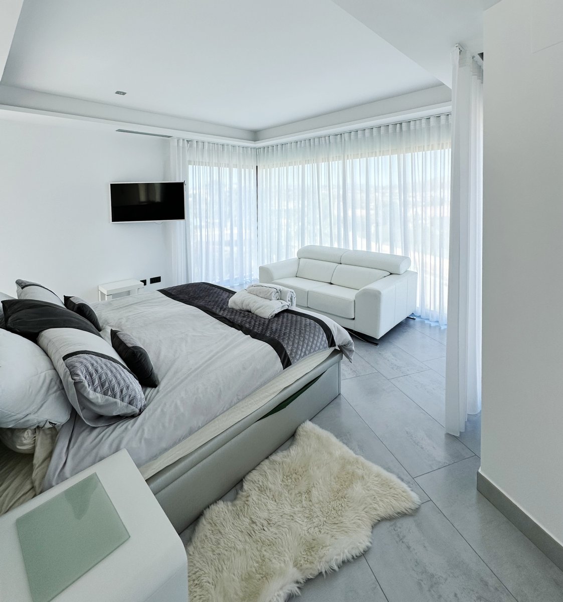 Diese Luxusvilla befindet sich in der renommierten Gegend von Villes del Vent, Jávea, Alicante. Mit einem modernen und eleganten Design besticht die Immobilie durch ihren schönen Panoramablick, sowohl auf die Berge als auch teilweise auf das Meer, und bietet einen anspruchsvollen und komfortablen Lebensstil. Die Villa verfügt über eine bebaute Fläche von 470 m² auf einem großzügigen Grundstück von 1.659 m², was großzügige und perfekt aufgeteilte Räume ermöglicht.