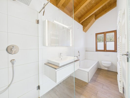 - Tolles Raumgefühl durch den Sichtdachstuhl im Obergeschoss