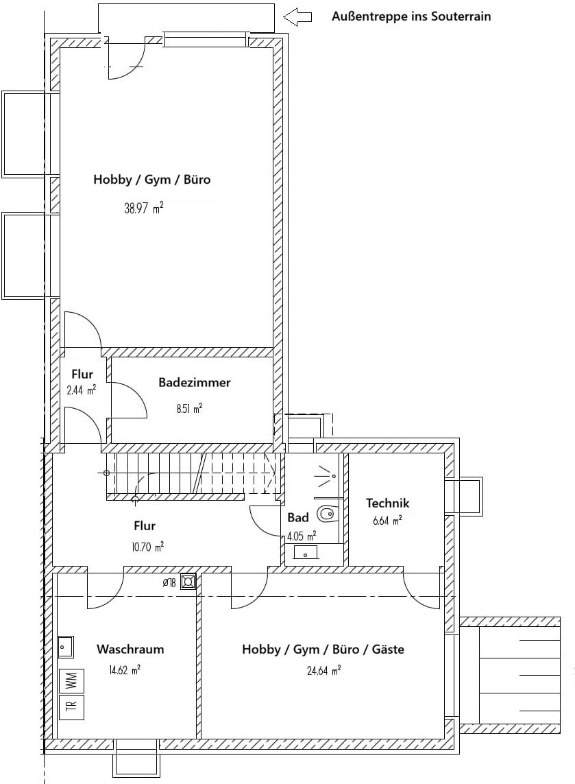 - Separater Zugang ins Souterrain über eine Außentreppe