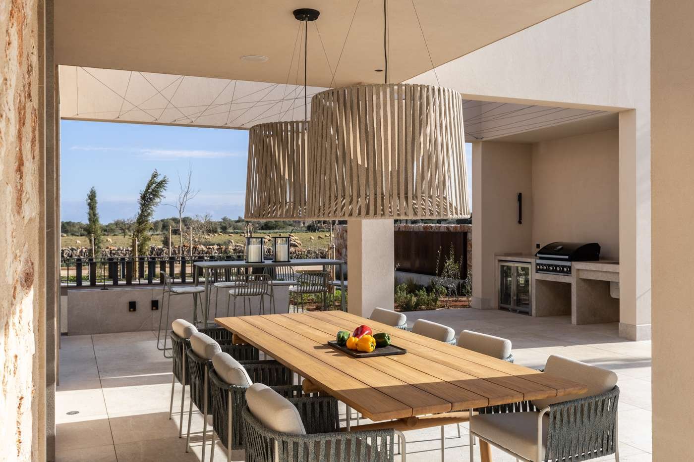 Die eleganten Bauausführung und die hochwertige Ausstattung dieser Finca setzen neue Maßstäbe in der modernen Architektur. Bereits fertiggestellt, vereint das Anwesen stilvolles Design mit Funktionalität und Komfort. Die großzügigen Räumlichkeiten bieten viel Lichteinfall und schaffen eine einladende Atmosphäre.