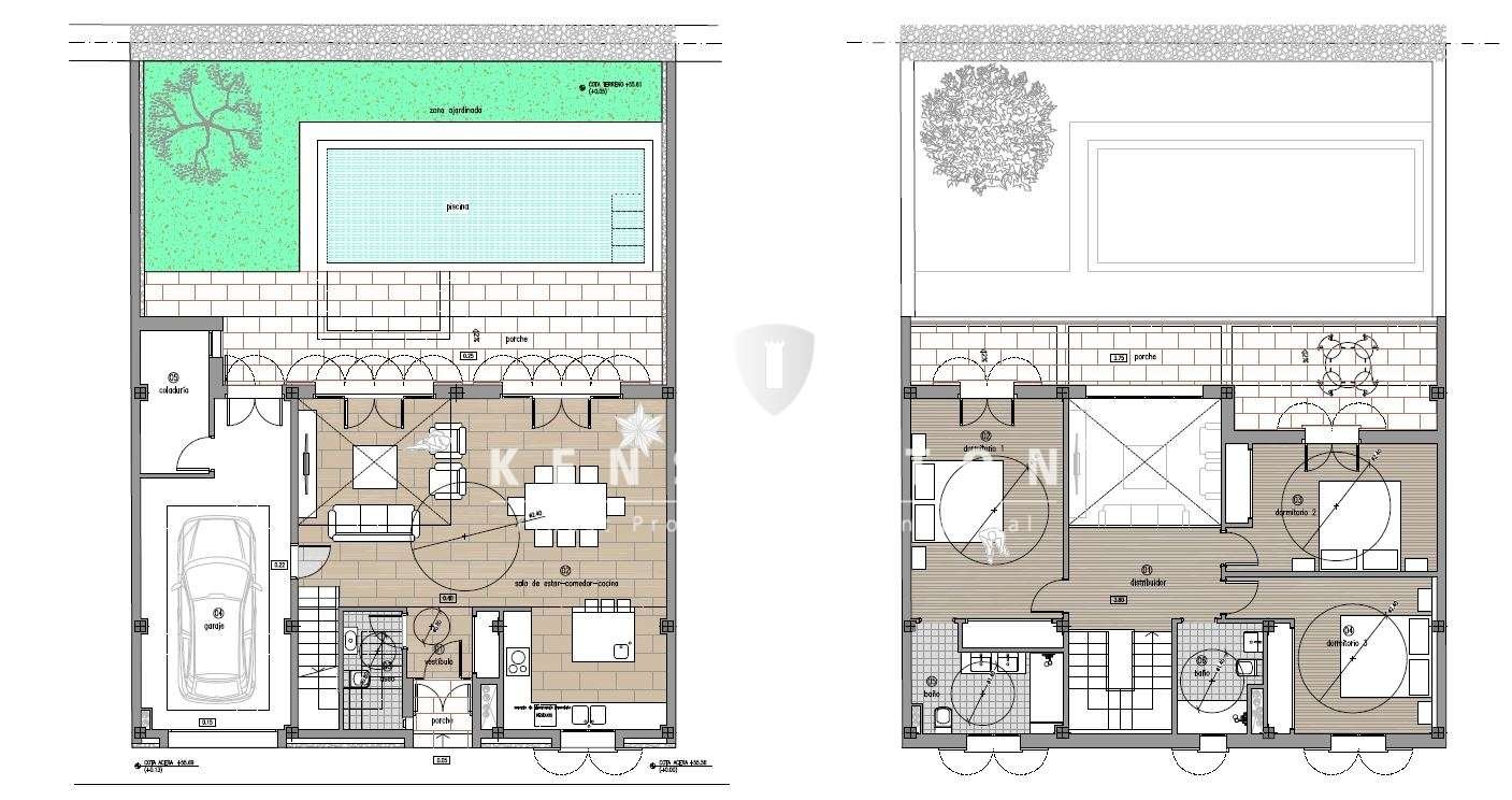 In der unteren Etage befindet sich zudem eine Garage und ein Hauswirtschaftsraum über die der Garten und Poolbereich auch zugänglich ist ohne durch den privaten Wohnbereich zu müssen.