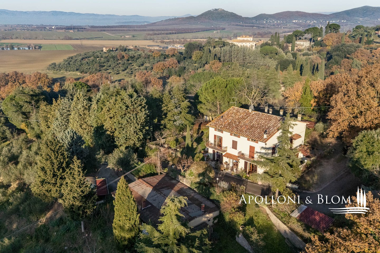 Mit atemberaubendem Blick und erhebliches Potenzial, auf drei Ebenen, ein Anhang mit Doppelgarage, Villa zum Verkauf in Panicale. Verwandeln Sie diese Villa mit Seeblick in ein maßgeschneidertes Haus! Auf einem Hügel mit Blick auf die umbrische Landschaft und die Ufer des Trasimenischen Sees gelegen, bietet diese Villa die Möglichkeit, Ihr neues Heim in einer außergewöhnlichen Umgebung mit ungehindertem Blick zu renovieren und individuell zu gestalten, nur 600 Meter vom historischen Dorf Panicale entfernt. Das dreistöckige Haus ist 372 Quadratmeter groß, wurde 2005 teilweise renoviert und verfügt über helle Innenräume, Steinbögen, Kamine und Balkone auf allen Seiten, die die Landschaft einrahmen. Es ist derzeit in zwei unabhängige Wohnungen unterteilt, kann aber leicht in eine elegante Residenz umgewandelt oder als Gästeunterkunft für den Fremdenverkehr und die Vermietung eingerichtet werden. Das Gebäude ist in gutem Zustand, perfekt gepflegt und bewohnbar und bietet zahlreiche Möglichkeiten für eine zeitgemäße Renovierung. Umgeben von 1,38 Hektar Land mit einem Garten und der Möglichkeit, einen Swimmingpool zu bauen, gehören ein Olivenhain in voller Produktion und mehrere separate Nebengebäude mit einer Gesamtfläche von 229 Quadratmetern dazu, darunter eine Doppelgarage, ein Schuppen, zwei Geräteschuppen, zwei Lagerräume, ein Keller, ein Holzlager und ein Holzofen. Apolloni & Blom ist bereit, Sie in jeder Phase zu unterstützen, von der ersten Idee bis zur schlüsselfertigen Übergabe. Mit einem lokalen Netzwerk von vertrauenswürdigen Architekten, Designern und Bauunternehmern bieten wir das lokale Fachwissen, um diese Villa mit Seeblick in ein maßgeschneidertes Haus zu verwandeln, das perfekt mit seiner außergewöhnlichen Umgebung harmoniert.