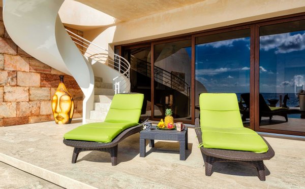 - Pool und Spa: Glasgefliester Infinity-Pool mit Unterwassersitzgelegenheiten und Whirlpool für bis zu 6 Personen.