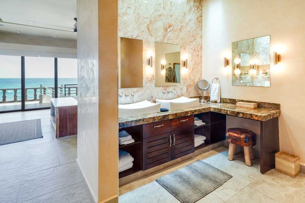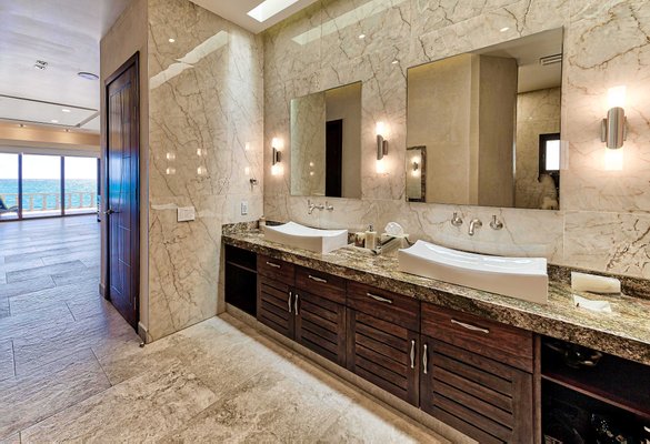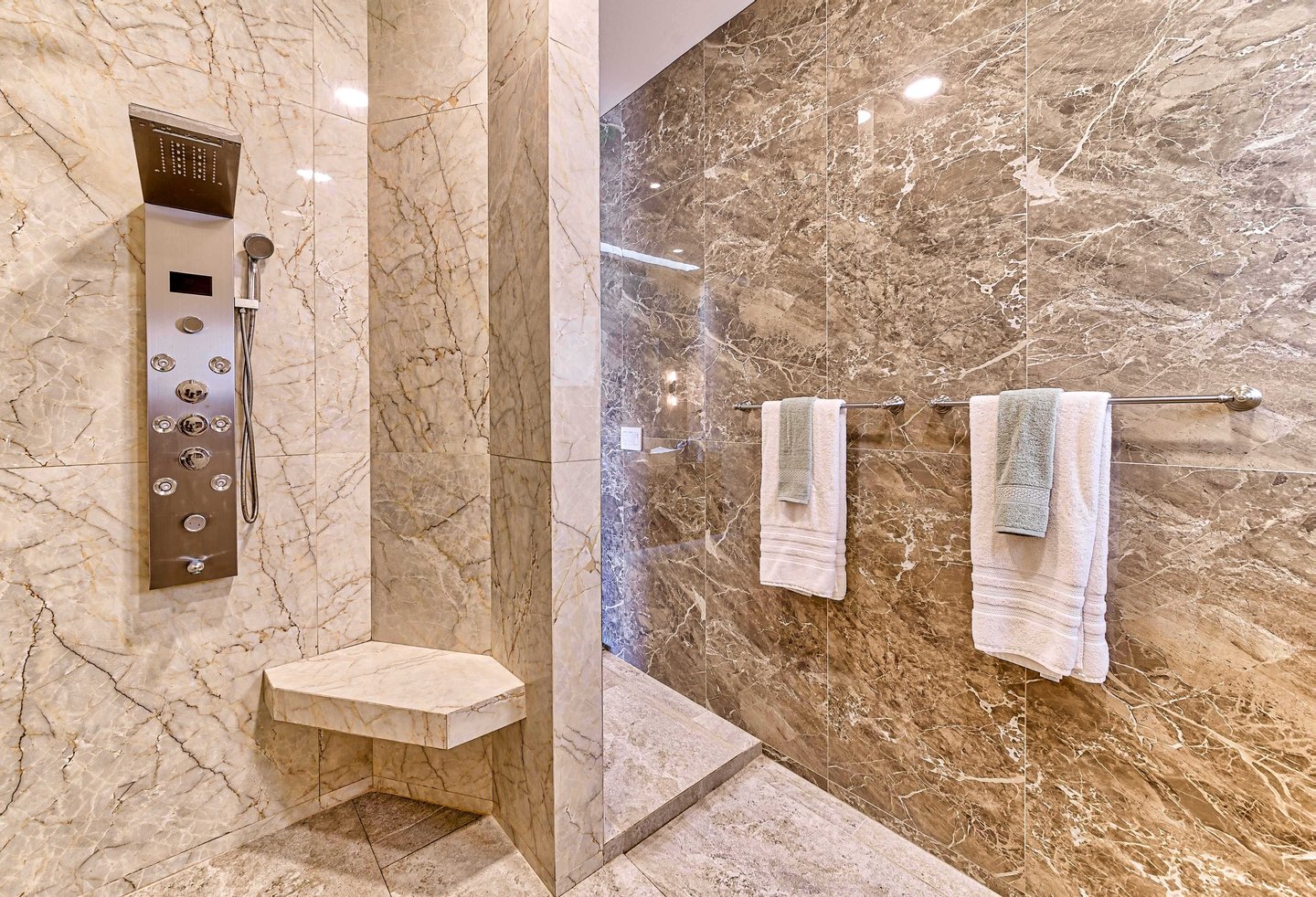 Doppelt. - Badezimmer: 5 Vollbäder + 1 WC, alle mit luxuriösen Oberflächen und Regenduschen.