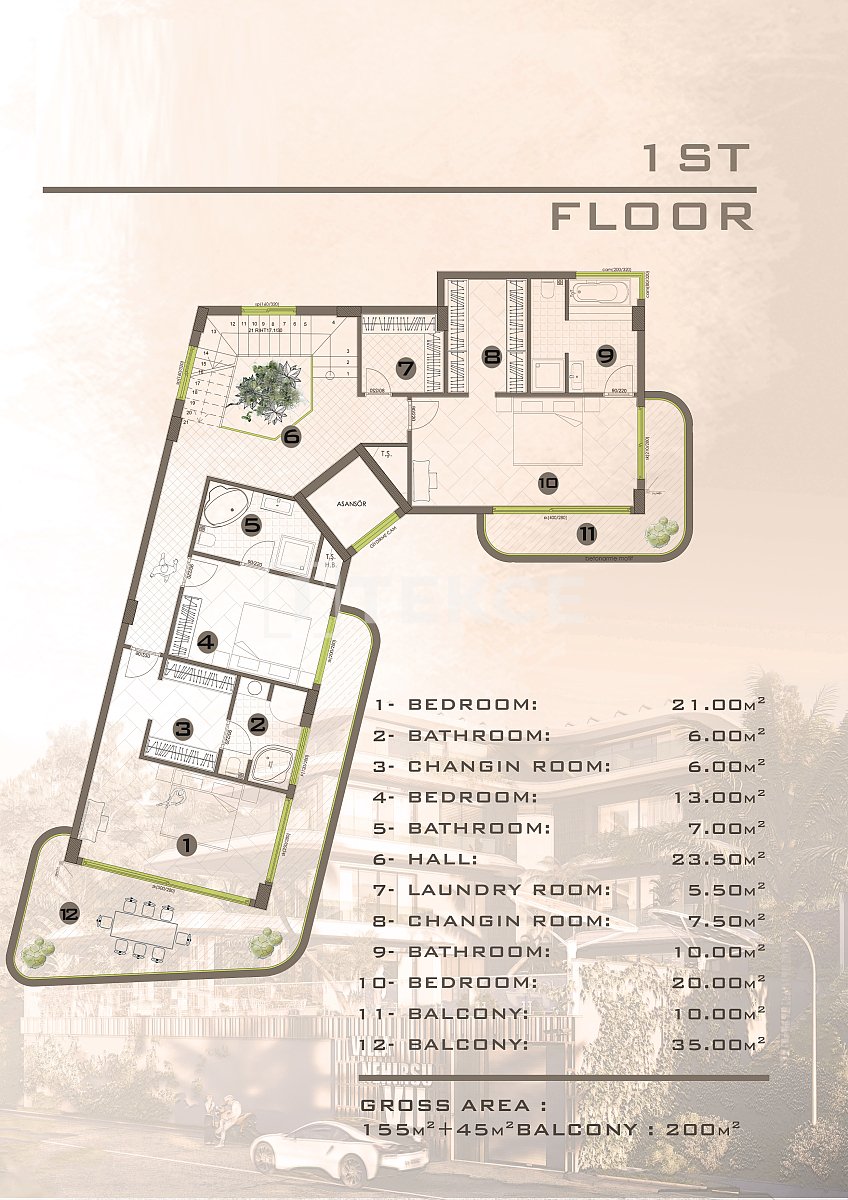 Die Villa in Alanya Kargıcak wurde auf einem 718 m² großen Grundstück erbaut und verfügt über 4 Etagen. Diese Luxusvilla verfügt über einen Außenpool, ein Kinderbecken, ein intelligentes Haussystem, Fußbodenheizung, eine Sauna, einen Whirlpool, einen Fitnessraum und ein Dampfbad. Terrassen und breite Balkone auf jeder Etage bieten eine atemberaubende Aussicht an. Die freistehende Villa, die für einen luxuriösen Lebensstil konzipiert wurde, verfügt über 7 Schlafzimmer und 2 Wohnzimmer. Außerdem umfasst sie 7 Badezimmer und Toiletten, 9 Balkone und Terrassen sowie einen Aufzug und einen Generator. Der Garten, der sich innerhalb eines umzäunten Bereichs befindet, verfügt über einen großen privaten Pool mit Meerblick auf der Südseite sowie Liegeflächen, einen Grillplatz und einen Pavillon.