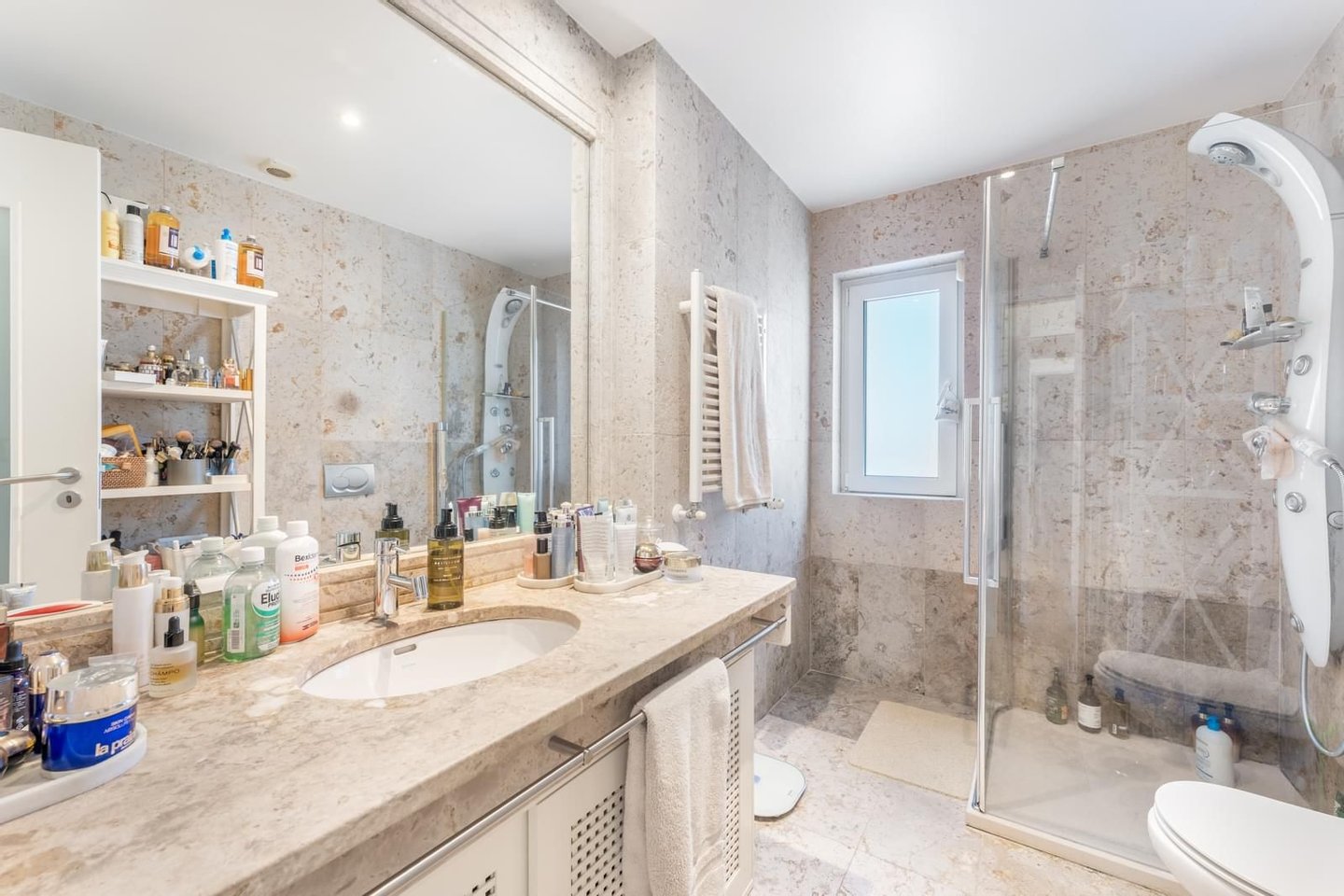 This is the only 5-bedroom villa in the Marinha Village condominium, featuring sea views from both suites. Located steps from Casa da Guia, the coastal bike path and the Quinta da Marinha, the property stands out for its rare layout and direct