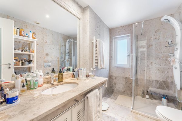 This is the only 5-bedroom villa in the Marinha Village condominium, featuring sea views from both suites. Located steps from Casa da Guia, the coastal bike path and the Quinta da Marinha, the property stands out for its rare layout and direct coastal setting.~~The ground floor includes a living and dining area with fireplace, a fully equipped kitchen, laundry room and access to the garden with awnings.~~Upstairs, both suites offer clear sea views, complemented by three additional bedrooms, each with private balconies.~The home also includes five parking spaces, a large 50 m2 storage room, central heating and surveillance cameras.~~The condominium offers a pool, changing rooms, a residents’ room and daytime on-site security. A uniquely positioned home for those seeking space, location and sea views in Cascais.~~Cascais is a Portuguese village famous for its bay, local business and its cosmopolitanism. It is considered the most sophisticated destination of the Lisbon’s region, where small palaces and refined and elegant constructions prevail. With the sea as a scenario, Cascais can be proud of having 7 golf courses, a casino, a marina and countless leisure areas. It is 30 minutes away from Lisbon and its international airport.