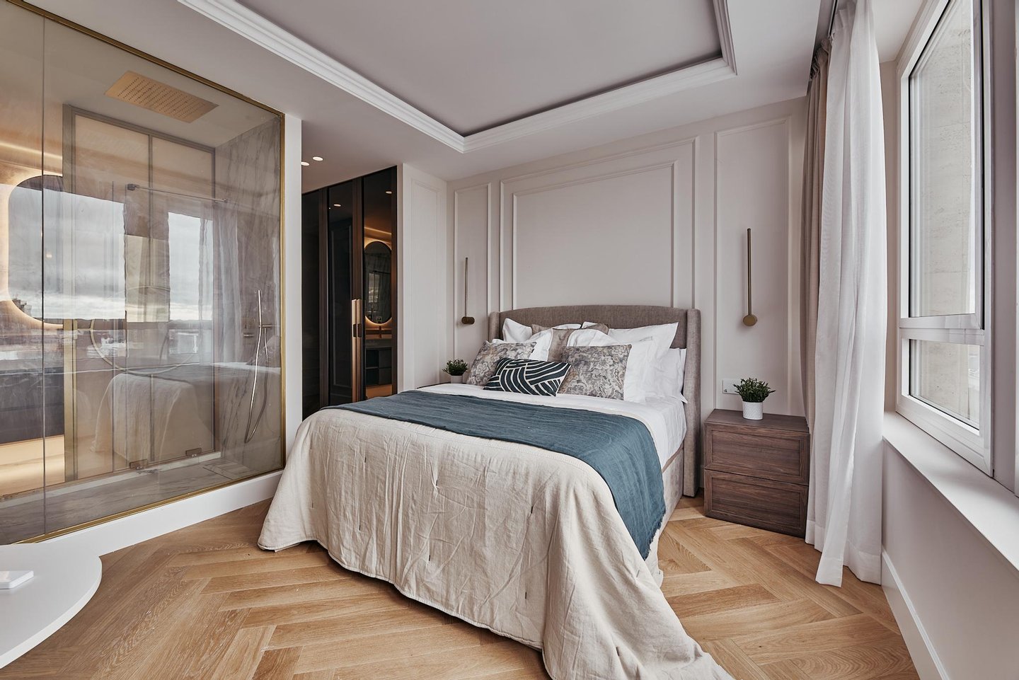 This luxury penthouse in Madrid, located on the 13th floor, occupies one of the most privileged residential positions in the Madrid axis. A unique property in terms of height, orientation and 360º panoramic views, completely renovated with premium qualities and designed for a high-level urban lifestyle.
