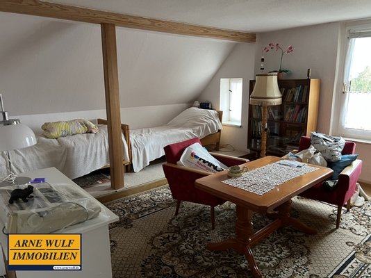 Im Inneren verbindet das Haus den Charme eines Altbaus mit zeitgemäßen Modernisierungen. Großzügige Räume, angenehme Deckenhöhen und eine durchdachte Raumaufteilung schaffen eine wohnliche Atmosphäre mit viel Gestaltungsspielraum. Das Erdgeschoss beherbergt die zentralen Wohnräume sowie ein Vollbad, während im Dachgeschoss, das im Jahr 2010 ausgebaut wurde, zusätzliche Wohn- und Schlafräume sowie ein Duschbad zur Verfügung stehen.