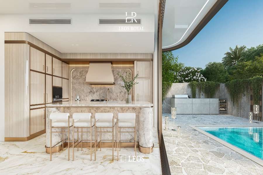 Wenn Sie das Stadthaus mit drei Schlafzimmern und Arbeitszimmer betreten, werden Sie sofort von der modernen Architektur fasziniert sein, die futuristische Technologie und Natur nahtlos miteinander verbindet. Die Gemeinschaft verfügt über Wasserkanäle, Lagunen und einen KI-gesteuerten Wasserfall, die eine ruhige Atmosphäre schaffen und den visuellen Reiz verstärken. Die üppige Landschaftsgestaltung und über 15.000 Bäume schaffen eine grüne Umgebung mit fußgängerfreundlichen Wegen für einen gesunden Lebensstil im Freien. Das Innere des Stadthauses ist so gestaltet, dass der Schwerpunkt auf offenem Wohnen, natürlichem Licht und nahtlosen Übergängen zwischen Innen und Außen liegt. Hochwertige Oberflächen wie helles Holz und gebürstetes Metall verleihen dem Raum einen Hauch von Luxus. Die moderne Architektur zeichnet sich durch skulpturales Design, fließende Grundrisse, hohe Decken und hochwertige Materialien aus und bietet einen nachhaltigen und vernetzten Lebensstil. Wichtige Einrichtungen wie die AI Wellness Arena, der Reflection Club, Fitnesszentren, Schwimmbäder und Spielbereiche für Kinder sorgen dafür, dass die Bewohner Zugang zu Wellness- und Freizeitaktivitäten haben. Die Gemeinschaft bietet auch soziale Lounges, Gemeinschaftszentren und Sportplätze im Freien, wo die Bewohner Kontakte knüpfen und ein lebendiges soziales Leben genießen können. Das Stadthaus ist ideal für Familien, da es über spezielle Bildungs- und Freizeitbereiche verfügt, die das moderne Familienleben unterstützen. Die ruhige Umgebung mit geringer Dichte bietet eine hervorragende Anbindung an die wichtigsten Gebiete Dubais und bietet einen friedlichen Rückzugsort von der Hektik der Stadt. Die nahtlosen Übergänge zwischen Innen- und Außenbereich sowie die familienfreundlichen Einrichtungen machen dieses Stadthaus zu einem perfekten Ort, an dem man sich zu Hause fühlt.