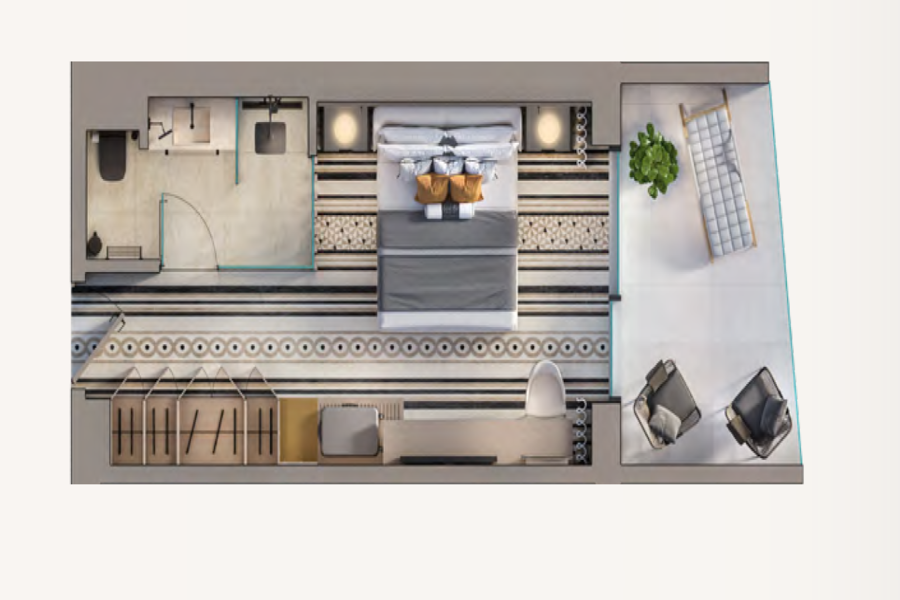 Willkommen in diesem luxuriösen Studio-Hotel-Apartment, das sich in einem Hotelprojekt am Wasser befindet und 12 Jahre lang garantierte Mieteinnahmen bietet. Wenn Sie eintreten, werden Sie von einem wunderschön gestalteten Wohnraum mit modernen