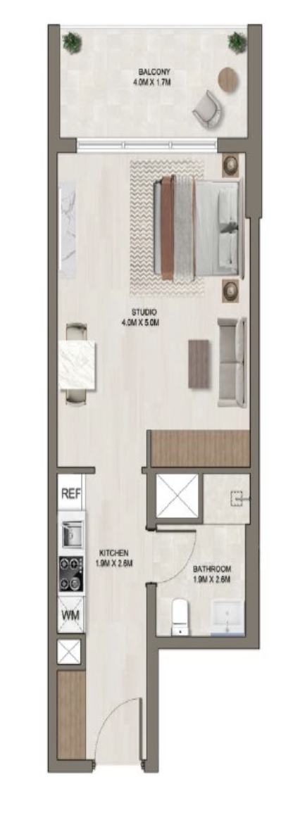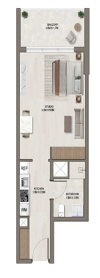 Willkommen in Ihrem neuen Zuhause! Betreten Sie die moderne Lobby und lassen Sie sich von der hochwertigen Ausstattung beeindrucken. Die Aufzüge bringen Sie bequem zu Ihrem Studio-Apartment im obersten Stockwerk. Hier erwartet Sie ein zeitgemäßes,