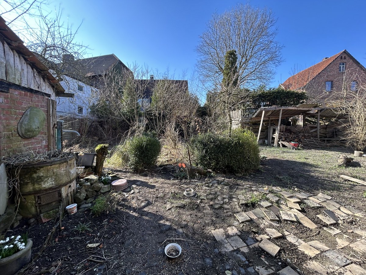 Der Stallanbau neben dem Hauseingang kann laut Verkäuferin abgerissen und durch einen freistehenden Carport ersetzt werden, sodass zwei PKW-Stellplätze auf dem Grundstück möglich wären.