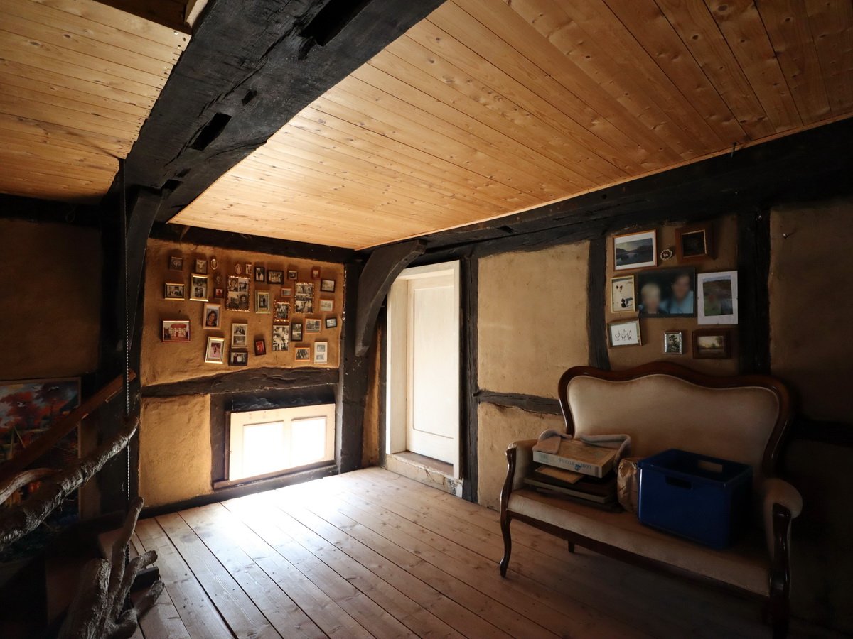 Ebenfalls von der Deele aus gelangt man über eine Treppe ins obere Geschoss. Dort befinden sich ein Schlafzimmer sowie zwei weitere Räume.