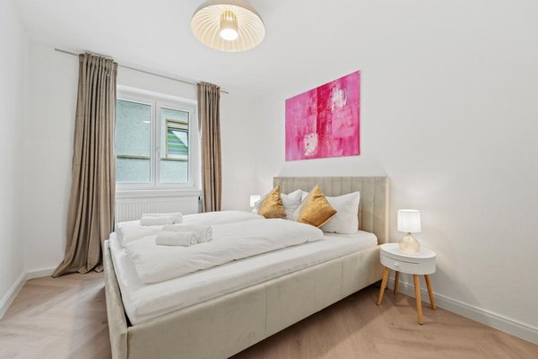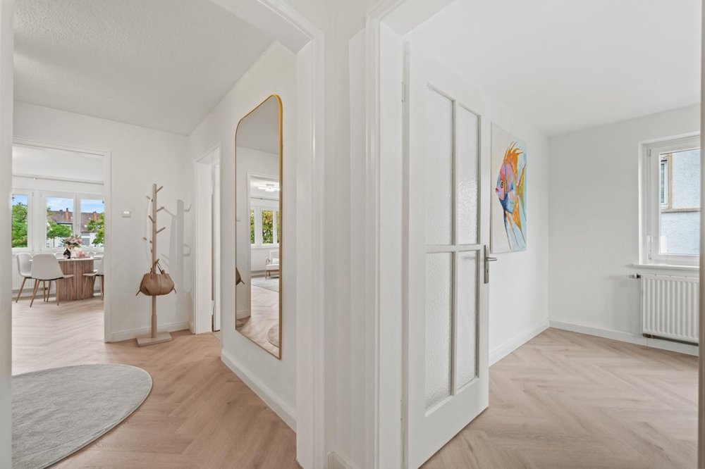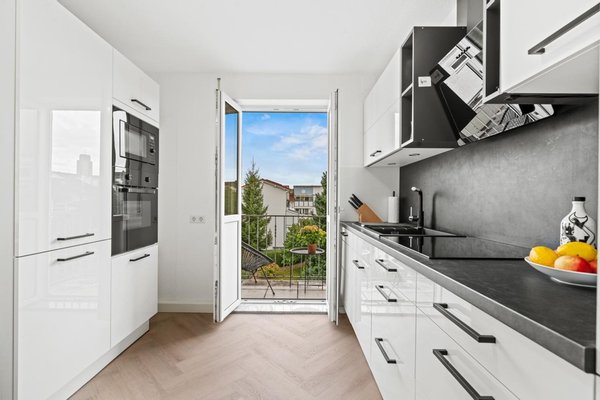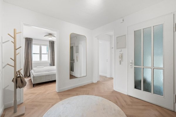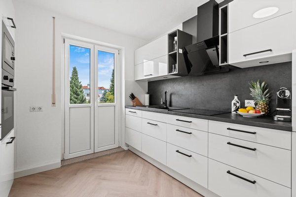 Die Wohnung wurde hochwertig und stilvoll saniert und überzeugt durch eine zeitgemäße Ausstattung und ein behagliches Wohngefühl. Der edle Fischgrät-Vinylboden verleiht den Räumen eine elegante Note, während die neue, hochwertige Einbauküche zusammen mit der aufwendig ausgewählten Möblierung – ein sofort bezugsfertiges Ambiente schafft.