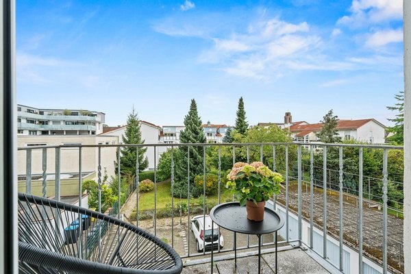Der sonnige Balkon lädt zum Verweilen ein und bietet zusätzlichen Wohnkomfort.