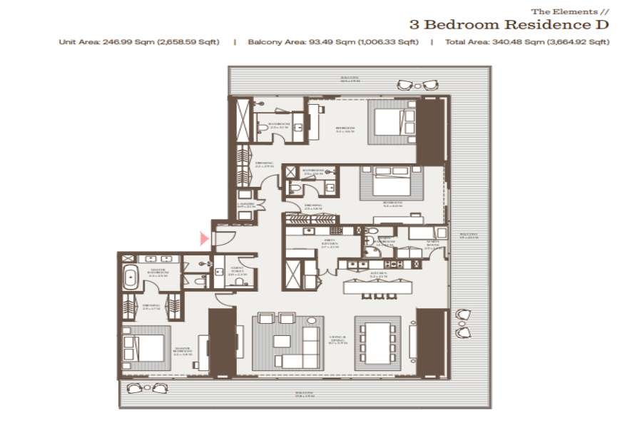Wenn Sie dieses luxuriöse Apartment mit drei Schlafzimmern in den Akala Hotels & Residences betreten, werden Sie von einer Fülle von Wellness- und medizinischen Annehmlichkeiten begrüßt, die Ihr Wohnerlebnis noch verbessern sollen. Vom hochmodernen Akala Spa mit Thermalkreisläufen und speziellen Behandlungen bis hin zur Everwell Medical Clinic, die modernste Therapien und AI-Gesundheitspläne anbietet, ist für jeden Aspekt Ihres Wohlbefindens gesorgt. Fitnessbegeisterte werden die voll ausgestatteten Fitnessstudios, das Fahrradstudio und die HIIT-Studios zu schätzen wissen, während diejenigen, die nach innerer Ruhe suchen, sich in den ruhigen Studios mit Klangheilung und Entspannungsdecks Yoga- und Meditationskursen hingeben können. Zur Erholung und Freizeitgestaltung können Sie ein Bad im Infinity-Pool im 30. Stock nehmen, Filmabende im Privatkino genießen oder sich im Whisky-Raum oder in der Zigarren-Lounge entspannen. Verwöhnen Sie sich mit von Hotels inspirierten Dienstleistungen wie 24/7-Sicherheitsdienst, Parkservice und Zimmerservice, während die im gesamten Apartment integrierte Smart-Home-Technologie für ein nahtloses Wohnerlebnis sorgt. Lassen Sie sich in den Bio-Cafés und der mediterranen Pool-Lounge kulinarisch verwöhnen oder veranstalten Sie geschäftliche Meetings in den raffinierten Business-Lounges und Tagungsräumen.\n\nMit fortschrittlichen Luft- und Wasserreinigungssystemen, wellnessorientierten Materialien und einigen Einheiten mit Balkonen oder privaten Pools verspricht diese Luxuswohnung ein unvergleichliches Wohnerlebnis. Genießen Sie die ikonische Aussicht vom Entspannungsdeck im 30. Stockwerk mit Blick auf den majestätischen Burj Khalifa. Erleben Sie den Inbegriff des luxuriösen Wohnens in den Akala Hotels & Residences.