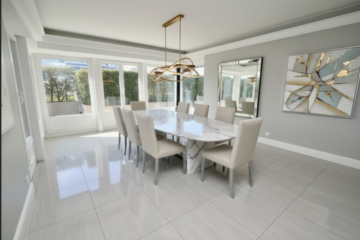 - Großzügige Flächen: Großes Wohnzimmer mit Kamin, Esszimmer.