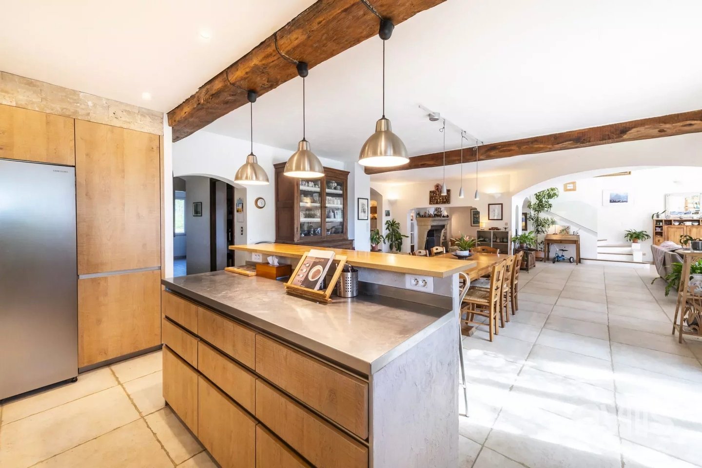 Eingebettet in den ruhigen Charme Südfrankreichs, erstreckt sich dieses weitläufige Anwesen über ca. 400 m². Die Villa besticht durch ein geräumiges, lichtdurchflutetes Wohnzimmer mit Domdecke und offener Küche. Von der offenen Küche aus haben Sie