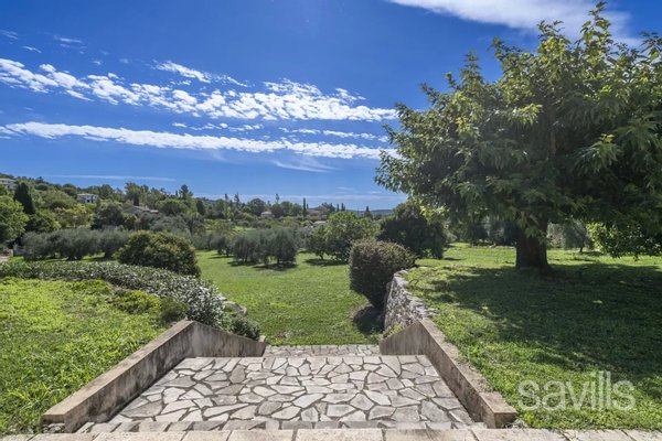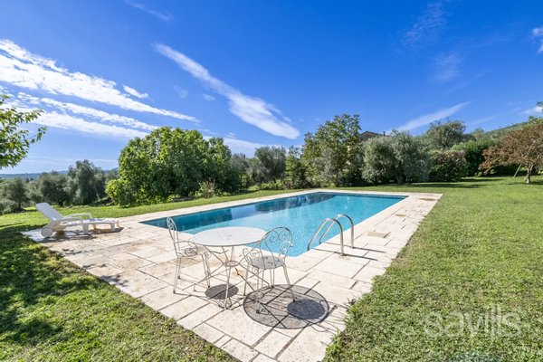Ein großer 13x6 Meter großer Pool befindet sich auf dem wunderschön angelegten, nach Süden ausgerichteten, 7800 m² großen Grundstück, umgeben von alten Olivenbäumen.