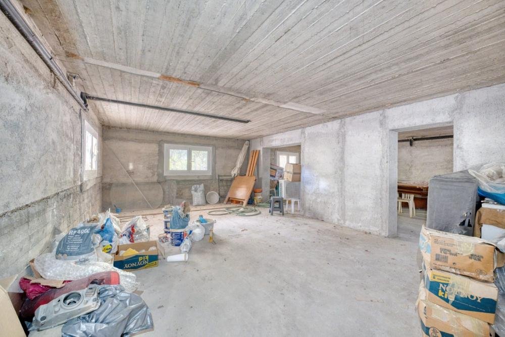 Im Inneren gehen die drei Ebenen fließend ineinander über. Im Erdgeschoss befinden sich der Wohn- und Essbereich mit einer voll ausgestatteten Küche, ein Doppelzimmer und ein Badezimmer mit Waschmaschine und Trockner. Das erste Obergeschoss bietet zwei Zweibettzimmer, ein zweites Badezimmer, eine kleine Leseecke und eine Veranda mit Meer- und Bergblick. Im Untergeschoss befinden sich ein großer Mehrzweckraum sowie Abstellräume und der Heizungsbereich.