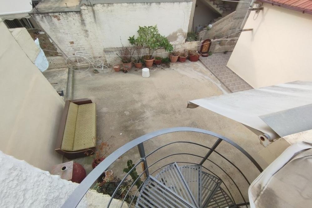 Eine Metalltreppe führt auf die Dachterrasse und bietet einen Ausblick auf die umliegende Natur und die Nachbarschaft. Vamvakopoulo liegt in der Nähe des Zentrums von Chania und bietet bequemen Zugang zu Geschäften und Einrichtungen des täglichen Bedarfs.
