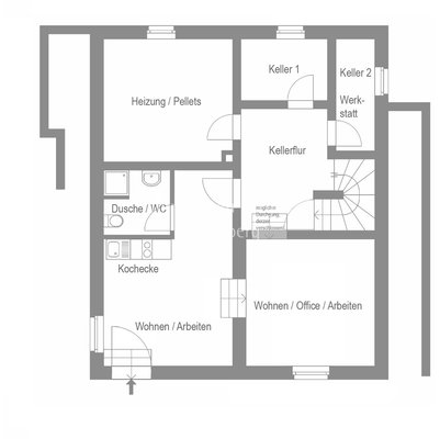 Ein Vorteil des Hauses ist der Einliegerbereich mit separatem Zugang, bestehend aus einem Zimmer/Wohnbereich mit Kochecke, einem Zimmer/Büro sowie einem Duschbad. Erweitern Sie hier Ihre Möglichkeiten zur Nutzung als Homeoffice, eigenes Reich für liebe Gäste oder zur Vermietung.